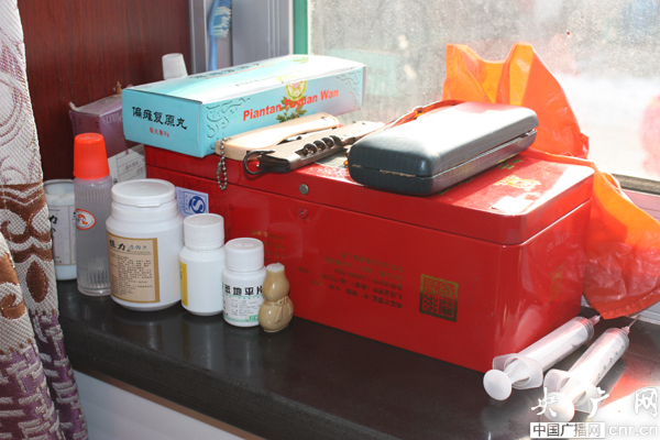 冷秋穎家中的藥匣子,爺爺奶奶也長期臥病在床(記者杜震 攝)