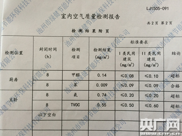 王林:目前來看基本全部超標(biāo),甲醛、苯、胺、PVOC都有超標(biāo)的情況。(你們是在什么情況下檢測(cè)的?)這個(gè)條件已經(jīng)很寬松,按正常情況下,是對(duì)每個(gè)檢測(cè)單間密閉24小時(shí),因?yàn)樗麄兪窃谛薰さ,我們只是?duì)整個(gè)房間密閉了24小時(shí)。主要是什么超標(biāo)?總體來說應(yīng)該說他的施工工藝、管理、材料都有一些問題,累計(jì)起來就會(huì)表現(xiàn)出質(zhì)量問題。比如說,整個(gè)廚房衛(wèi)生間都是大面積的墻磚啪啪啪往下掉,一敲都是空的。