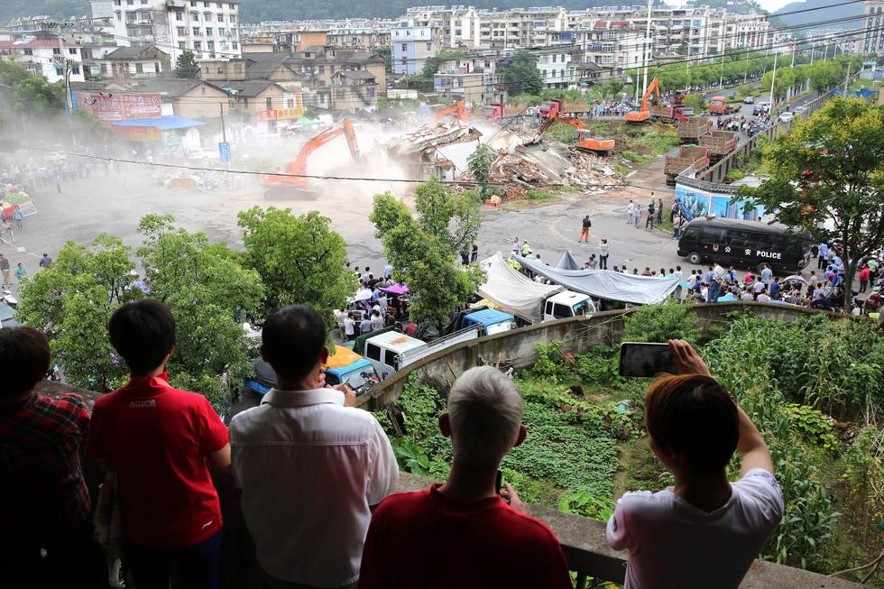 黃山市民圍觀“最牛釘子戶”被拆除。