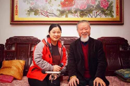 記者采訪廣西壯族自治區(qū)彩調(diào)團(tuán)原團(tuán)長龍杰鋒(右)