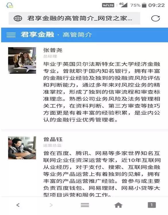 君享金融官網(wǎng)對(duì)其總經(jīng)理的簡(jiǎn)介被指虛假宣傳