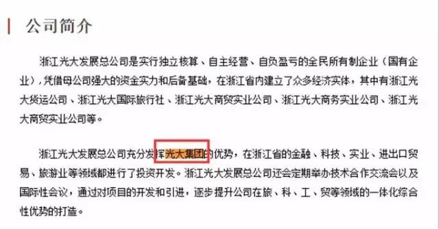 浙江光大發(fā)展總公司官網(wǎng)聲稱依托光大集團(tuán)背景