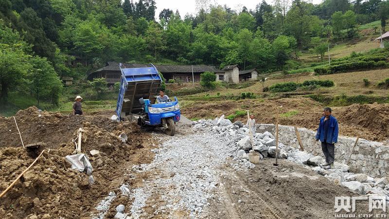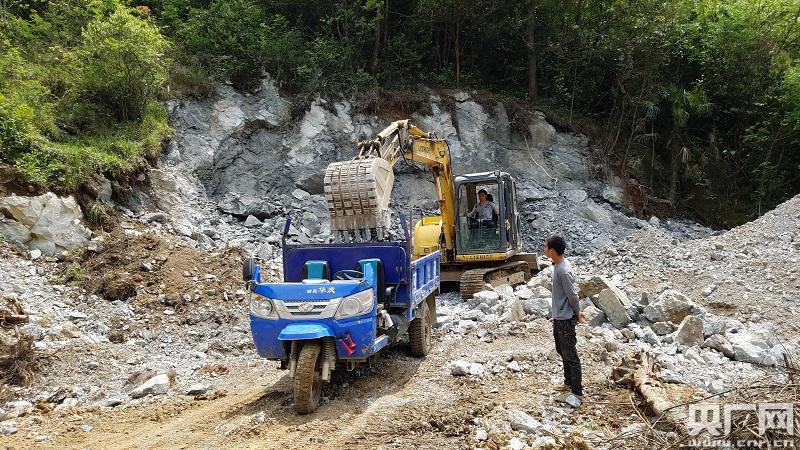 26歲的周波開著農(nóng)用三輪車,給工地拉石料