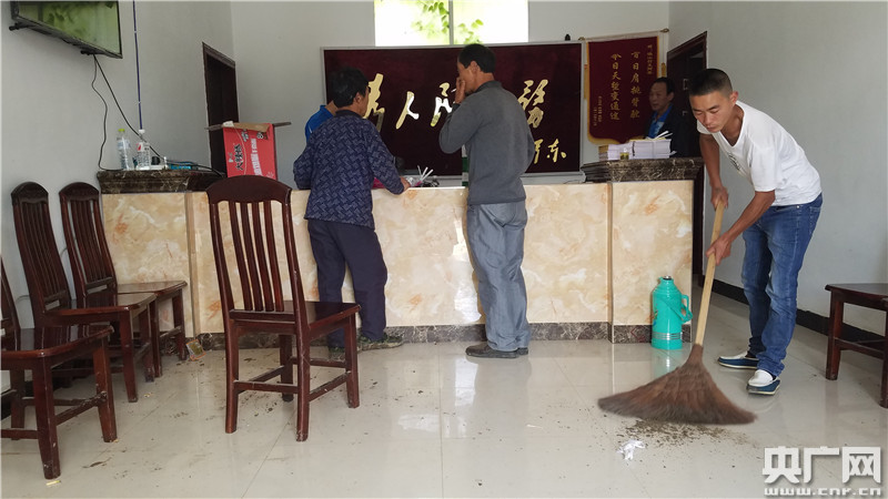 培訓(xùn)結(jié)束,村民幫忙打掃衛(wèi)生。
