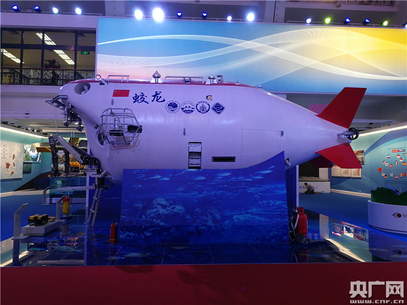 鼎鼎大名的“蛟龍”號(hào)也在這里“現(xiàn)身”。展廳里一比一大小的“蛟龍”模型,它白色的“身軀”,紅色的“尾巴”,仿佛把觀眾帶進(jìn)了深海。更重要的是,模型不僅好看,還可以進(jìn)去觀摩,感受一把駕駛的樂趣。國(guó)家發(fā)展改革委經(jīng)濟(jì)運(yùn)行調(diào)節(jié)局副局長(zhǎng)李云卿表示:“五年來,蛟龍?zhí)柨偤匠踢_(dá)到8.6萬海里,獲得了4950個(gè)GB的海量高精度定位的調(diào)查數(shù)據(jù)和3860件珍貴的地質(zhì)與生物樣品,成效非常顯著!