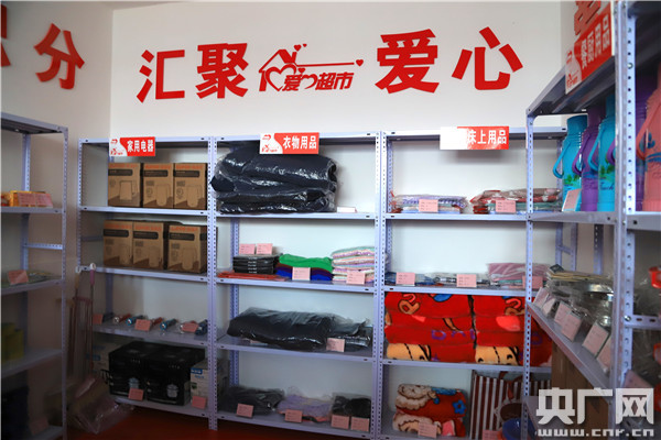 河北省張北縣公會(huì)鎮(zhèn)落花營村村民可以在愛心超市兌換生活用品(央廣網(wǎng)記者 張佳琪 攝)