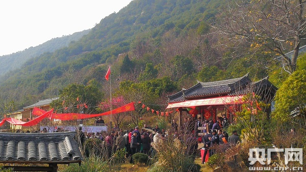白巖下村分紅大會在仙巖景區(qū)門口舉行(中央廣播電視總臺央廣記者 杜金明 攝)