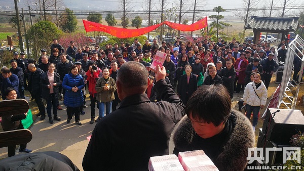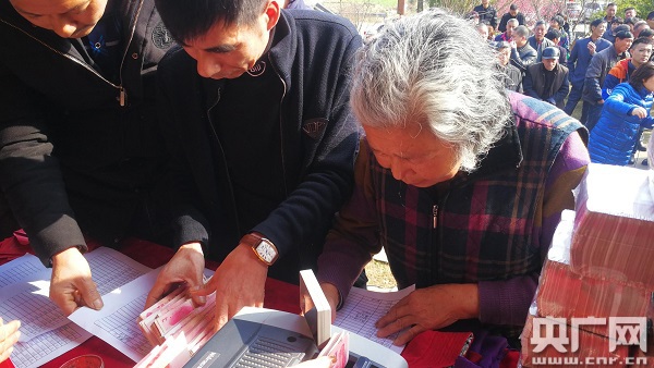 被叫到名字的村民逐一領(lǐng)取分紅(中央廣播電視總臺央廣記者 杜金明 攝)
