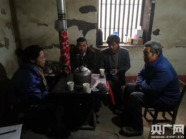 村支書鐘雅和村監(jiān)委會主任姬太志在村民家里進行愛心超市兌換獎勵打分(中央廣播電視總臺央廣記者 溫超 攝)
