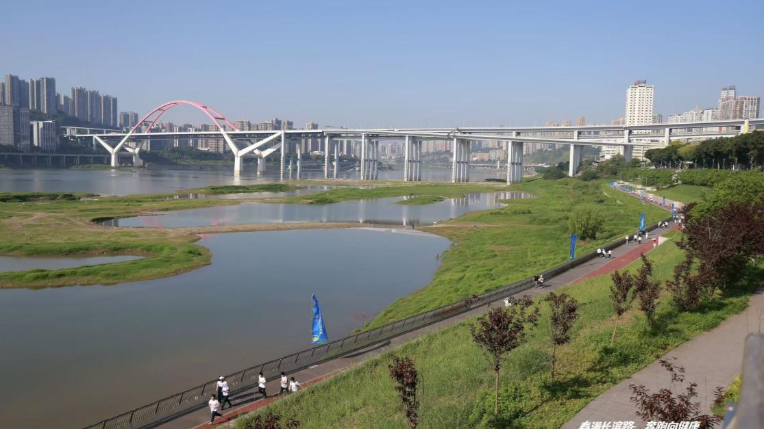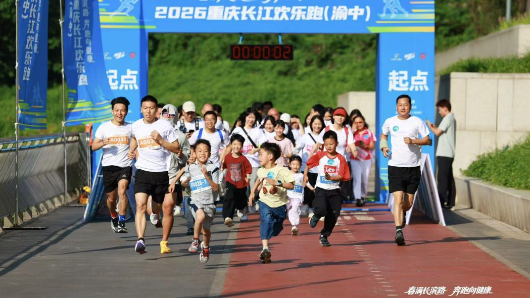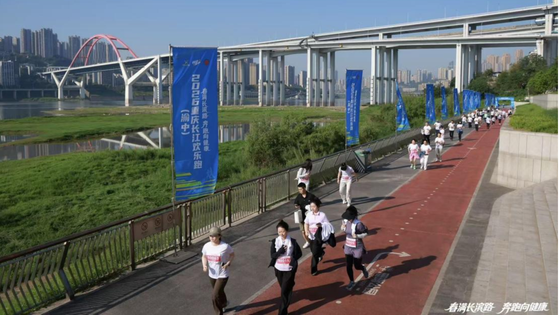 上午9時(shí),發(fā)令槍響,“2026重慶長(zhǎng)江歡樂跑”在渝中區(qū)長(zhǎng)濱路健身步道上活力開跑,人群如彩帶般涌上5.6公里的沿江賽道。浩浩長(zhǎng)江波光粼粼,步道兩側(cè)花木蔥蘢、三角梅怒放。跑者們穿梭其中,仿佛躍入一幅流動(dòng)的山水畫卷——遠(yuǎn)眺渝中半島高樓林立,近聽浪花低語(yǔ),抬頭白鷺掠過,低頭綠蔭相伴。專業(yè)跑者的矯健身姿,家庭組小朋友活力萌態(tài),成為春日渝中醉美的畫面。