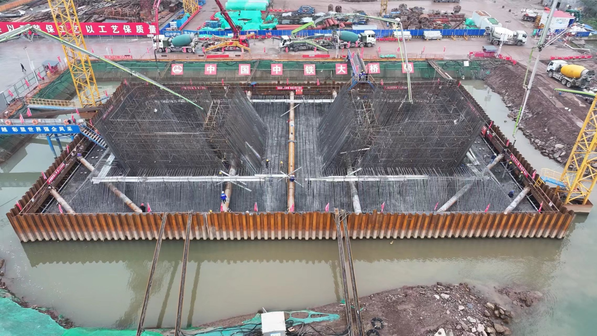 宜涪高鐵涪陵長江公鐵大橋19號墩承臺澆筑完成