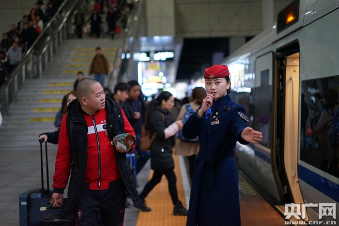 央廣網(wǎng)重慶2月27日消息(記者陳鵬 通訊員董露)2月26日下午16時(shí),重慶北站北廣場(chǎng)2站臺(tái)人聲鼎沸,“嗶……嗶……”緊湊的口笛聲不時(shí)傳來(lái),刺破站臺(tái)上的嘈雜,讓過(guò)往的旅客不由得警醒起來(lái)。