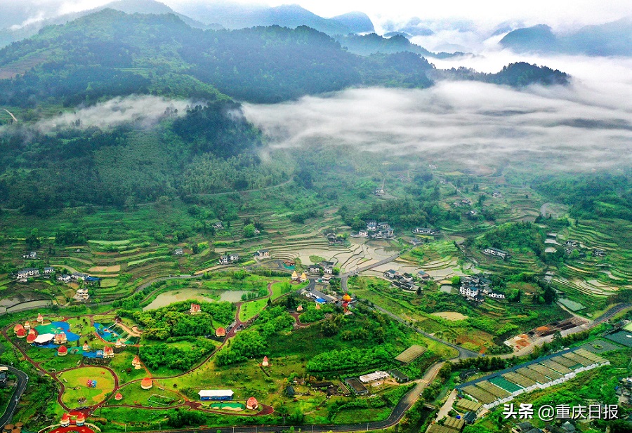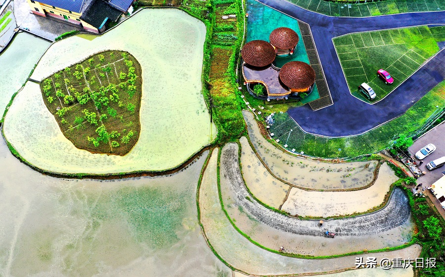 ▲萬盛經(jīng)開區(qū)綠水村,梯田與“蘑菇”點綴的停車場相映成趣 特約攝影 曹永龍 攝