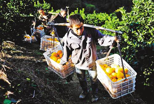 近日,酉陽偏柏鄉(xiāng)柏溪村,村民正在采摘、搬運(yùn)臍橙。近年來,偏柏鄉(xiāng)因地制宜發(fā)展蜜橘、椪柑、臍橙等生態(tài)果業(yè),打造保護(hù)生態(tài)和精準(zhǔn)扶貧相結(jié)合的特色產(chǎn)業(yè)。通過“生態(tài)果業(yè)+鄉(xiāng)村游+農(nóng)村電子商務(wù)”和推廣有機(jī)生態(tài)園建設(shè)等提質(zhì)增效措施,讓貧困農(nóng)民盡快增收脫貧。