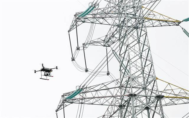 11月22日,重慶電網500千伏玉屏變電站外的高壓電線塔旁,智能巡檢無人機正在巡檢高壓線路 目前,重慶市電力已進入迎峰度冬時段,預計今冬最高負荷將達1300萬千瓦。為保障全市安全供電,國網重慶市電力公司利用地面的智能巡檢機器人和空中的智能巡檢無人機,組成了智能化設備巡檢“小分隊”,在全市各重要輸變電場所及特(超)高壓線路,集中開展了“空地一體”智能巡檢。 11月23日,沙坪壩玉屏變電站,一臺白色的智能巡檢機器人正在變電站設備區(qū)來回移動,時不時停下來,用“大眼睛”向設備區(qū)域張望,逐一仔細檢查線路。不遠處,一架智能巡檢無人機正在站外的高壓線路附近盤旋,對高空電力設備進行檢查。 -