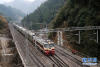 2月21日,在渝懷鐵路重慶黔江區(qū)段,中國成都鐵路局集團(tuán)公司涪陵工務(wù)段黔江線路車間魚泉工區(qū)工長何。ㄇ埃┖吐毠は蚴瘒展ぷ咴诨毓^(qū)的路上。新華網(wǎng)發(fā)(楊敏 攝)
