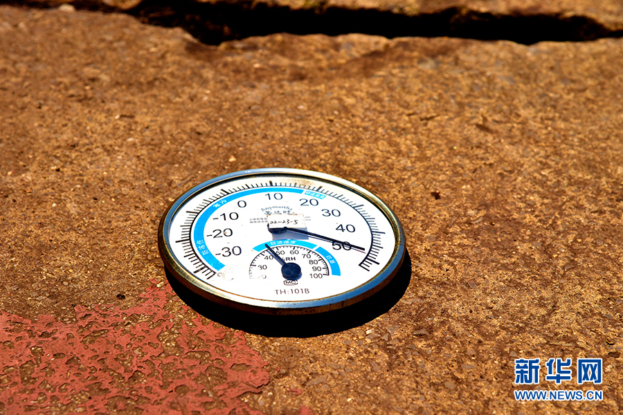 近日,重慶連續(xù)發(fā)布高溫預(yù)警。但在中國(guó)鐵路成都局集團(tuán)有限公司重慶車輛段內(nèi),一群火車“醫(yī)生”始終堅(jiān)守在鐵路客車、動(dòng)車組檢修一線,維修著進(jìn)出重慶的動(dòng)車組及普速客車。 8月16日,重慶。放在地面上的溫度表上顯示實(shí)時(shí)溫度達(dá)到50℃。新華網(wǎng)發(fā)(陳亞攝)