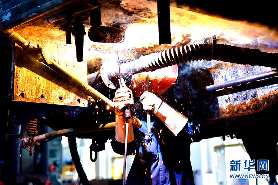 高溫天氣下,重慶車輛段工作人員正在進(jìn)行焊修作業(yè)。新華網(wǎng)發(fā)(陳亞攝)