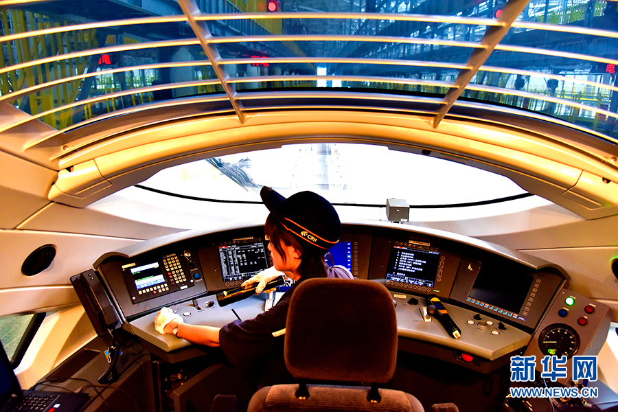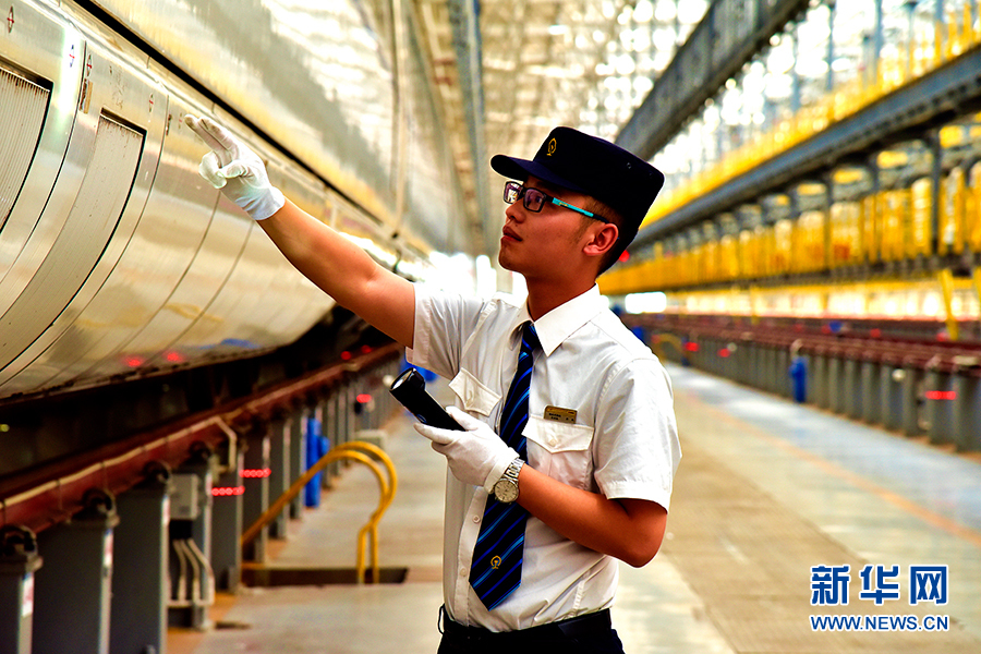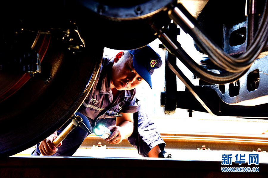 隨車機(jī)械師正在進(jìn)行出庫前的檢查。新華網(wǎng)發(fā)(陳亞攝)