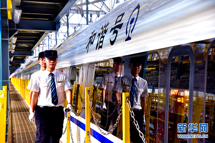 在位于重慶北動(dòng)車所的檢修場(chǎng)上,工作人員正在進(jìn)行列車檢修作業(yè)。新華網(wǎng)發(fā)(陳亞攝)