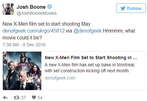 來自《蒙特利爾日報》的一篇報道透露,福斯已經(jīng)租用了位于蒙特利爾的MELS攝影棚,明年一月攝影棚就將開始搭景。MELS攝影棚總裁米歇爾·特魯?shù)聽枺∕ichel Trudel)也確認了這一消息:“他們將于明年五月正式開拍,將占用MELS的二號和三號攝影棚,拍攝工作將持續(xù)數(shù)個月!边@篇報道并沒有指明明年五月開拍的是哪部《X戰(zhàn)警》電影,然而《新變種人》導演喬什·波恩(Josh Boone)之后轉(zhuǎn)發(fā)了這一消息,同時還耐人尋味的問了一句:“到底會是哪部《X戰(zhàn)警》電影呢?”波恩轉(zhuǎn)發(fā)這條新聞無疑是“不打自招”,從之前外媒的報道來看,福斯能夠在半年后開拍估計也就只有《新變種人》了。