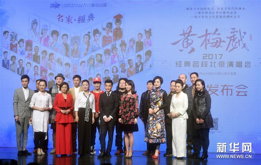 11月5日,出席新聞發(fā)布會(huì)的嘉賓合影。當(dāng)日,“名家·經(jīng)典”2017黃梅戲經(jīng)典名段北京演唱會(huì)新聞發(fā)布會(huì)在北京舉行。該演唱會(huì)以“傳統(tǒng)與時(shí)尚碰撞古老與現(xiàn)代融合”為創(chuàng)新宗旨,除了30余位黃梅戲表演藝術(shù)家之外,還將邀請(qǐng)戴玉強(qiáng)、祖海、白雪等歌手作為嘉賓進(jìn)行跨界合作。演唱會(huì)將于12月23日在北京人民大會(huì)堂舉行。新華社記者金良快攝