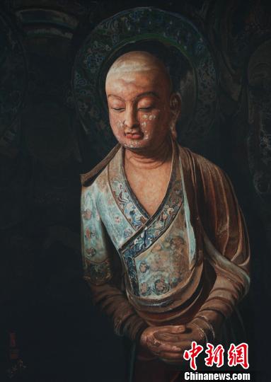 圖為用中國(guó)非遺蘇繡“繡”出的敦煌石窟造像!$娦 攝