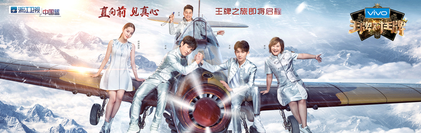 海報中,王牌隊長王源、沈騰,王牌“特工”賈玲、歐陽娜娜,以及王牌主持沈濤組成強大的“王牌家族”。他們身著極具特色的銀色航空服,迎著風(fēng)雪坐于飛機上。其中隊長王源、沈騰在機翼兩側(cè)目視前方,“暗暗較勁”扳著手腕的造型頗具深意,還未在節(jié)目中展開游戲?qū)Q,便讓人聞到了濃濃的“火藥味”。兩位王牌“特工”賈玲、歐陽娜娜則面對風(fēng)雪依舊笑容滿面活力十足,宛若寒冷冬季的“小太陽”。而坐落在機艙內(nèi)的王牌主持沈濤則手拿口哨,化身為王牌決戰(zhàn)的“評判官”。