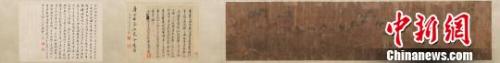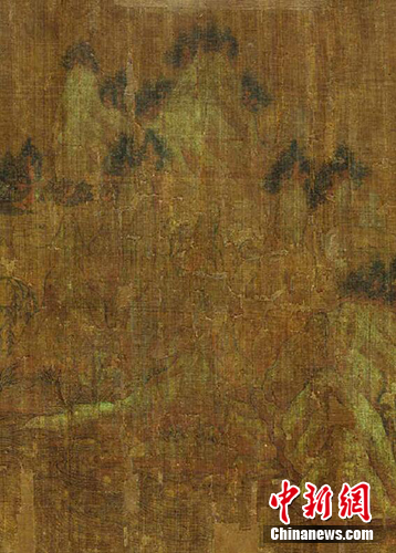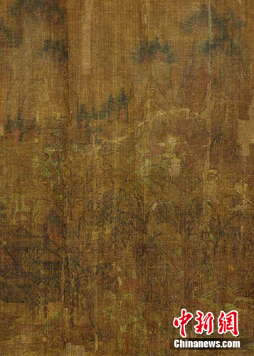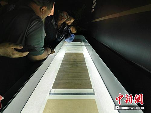 (傳)王維《著色山水圖》預(yù)展現(xiàn)場(chǎng)。中新網(wǎng)記者 宋宇晟 攝