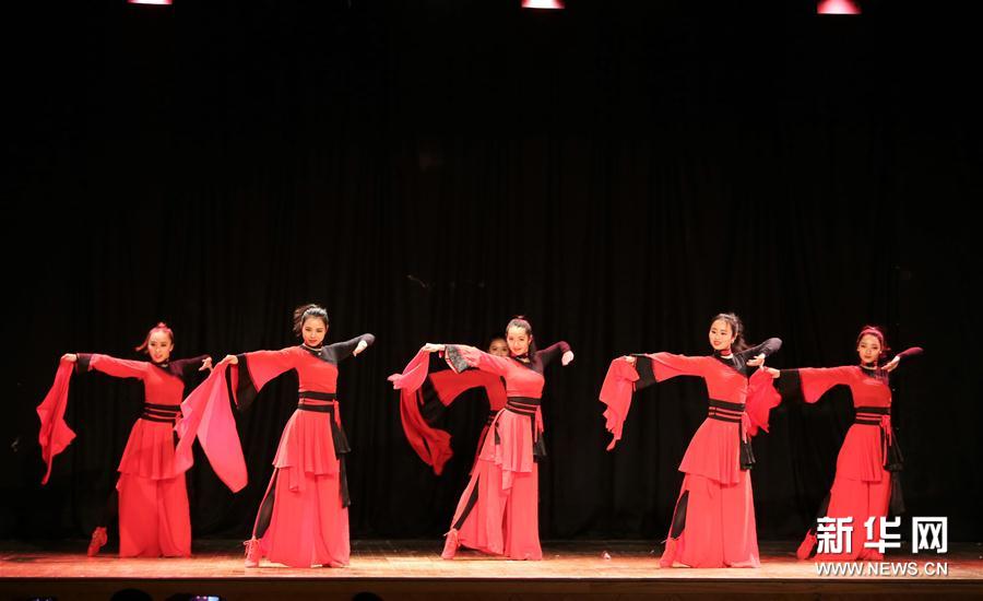 3月13日,在科威特首都科威特城,中國四川藝術職業(yè)學院藝術團的演員表演舞蹈。第29屆科威特“未來”藝術節(jié)正在此間舉行。作為唯一應邀參加的外國表演團體,四川藝術職業(yè)學院藝術團13日晚以一場“錦繡中國”民俗表演贏得觀眾的喝彩。新華社記者聶云鵬攝 -