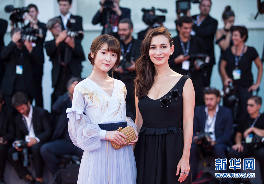 8月31日,在意大利威尼斯,“聚焦中國(guó)”活動(dòng)嘉賓演員徐嬌(左)和盧靖姍亮相第74屆威尼斯電影節(jié)紅毯。 新華社記者金宇攝 -