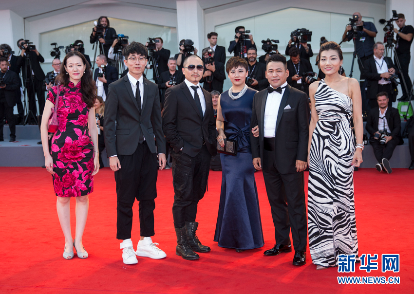 8月31日,在意大利威尼斯,“聚焦中國(guó)”活動(dòng)嘉賓中影簽約導(dǎo)演衛(wèi)鐵(右)、張楠(中)和李譞亮相第74屆威尼斯電影節(jié)紅毯。 新華社記者金宇攝 -