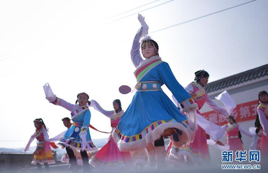 2月7日,演員在表演藏族舞蹈。當(dāng)日,在青海省大通回族土族自治縣朔北藏族鄉(xiāng)代同莊村的小廣場上,由當(dāng)?shù)卮迕褡园l(fā)組織的民間藝術(shù)團(tuán)進(jìn)行文藝演出,喜迎新春佳節(jié)。 新華社記者 吳剛 攝 -