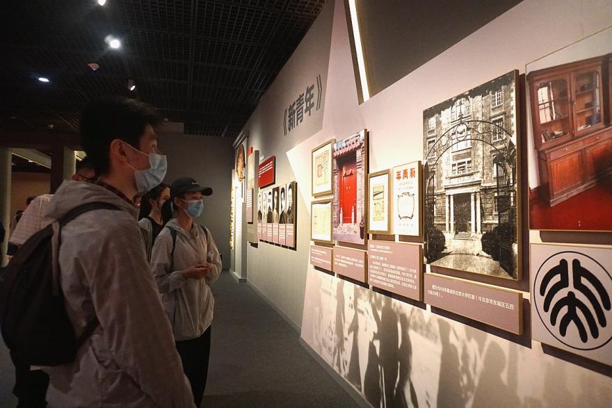特展展廳里,北大車協(xié)的同學(xué)們駐足在一張北大紅樓的歷史照片前,久久端詳不愿離開——這座建筑當(dāng)年是新文化運(yùn)動的大本營,亦是紅色中國的起點(diǎn)。