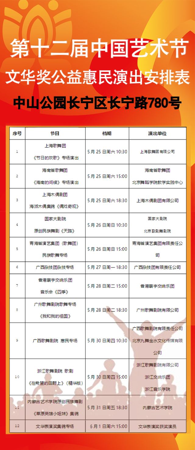 第十二屆中國藝術(shù)節(jié)即將在滬拉開帷幕,為更好地體現(xiàn)“藝術(shù)的盛會(huì),人民的節(jié)日”的辦節(jié)宗旨,組委會(huì)積極推動(dòng)十二藝節(jié)優(yōu)秀作品進(jìn)入社區(qū)、校園、商場、公園、部隊(duì)、企業(yè)開展惠民演出和活動(dòng),讓藝術(shù)滲透到城市的各個(gè)角落。
