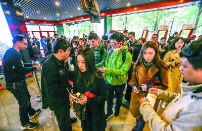 中國電影資料館藝術(shù)影院,影迷持票入場觀看北京國際電影節(jié)展映影片。 本報(bào)記者 武亦彬攝