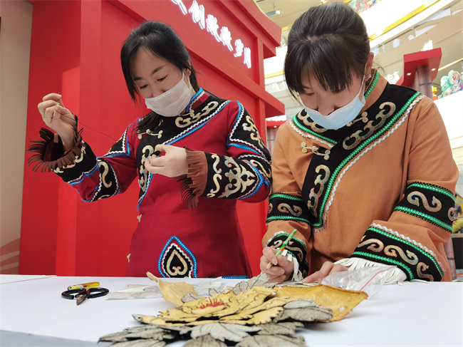 非遺傳承人現(xiàn)場展示赫哲族傳統(tǒng)技藝。馬俊瑋 攝