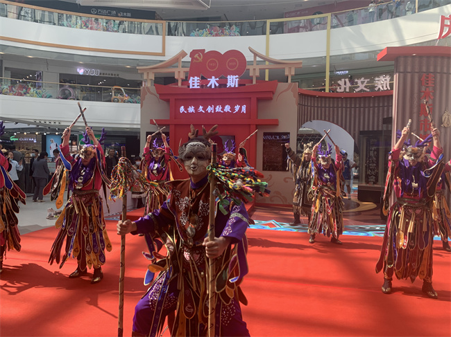 當天,“民族文創(chuàng)致敬歲月”——佳木斯市博物館慶!敖h百年”赫哲族文創(chuàng)產(chǎn)品展暨“非遺文化季”主題活動在佳木斯萬達廣場拉開帷幕。佳木斯市博物館長郝春宇介紹,這是博物館首次以赫哲族文化元素為有效載體,讓文博走進企業(yè),力爭讓更多的人走進博物館,感知佳木斯,了解和感受到赫哲族傳統(tǒng)文化和非物質(zhì)文化遺產(chǎn)的獨特魅力。