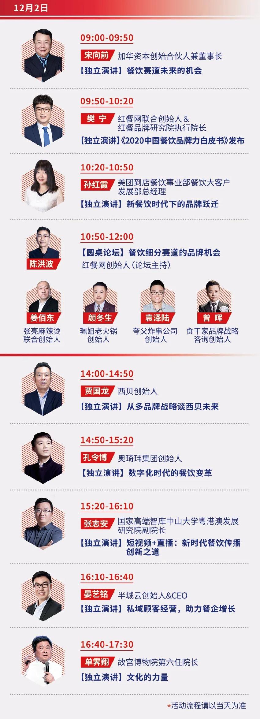 故宮博物院“網(wǎng)紅院長”單霽翔、分眾傳媒創(chuàng)始人江南春、西貝創(chuàng)始人賈國龍、加華資本創(chuàng)始合伙人宋向前、知名空間設(shè)計師沈雷、漢源餐飲大學(xué)運(yùn)營學(xué)院院長李展鵬、尊寶比薩創(chuàng)始人羅高峽……各路風(fēng)云人物都來了!