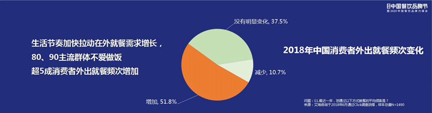 隨著生活節(jié)奏的不斷加快,拉動就餐需求的增長,80、90后群體本身在家做飯的習(xí)慣慢慢被突破了。未來有兩個機會,一個是到店機會越來越多。除此之外,方便食品這個趨勢在未來擁有巨大的潛力,會是知名連鎖餐飲公司的絕佳發(fā)展機會。食材連鎖供應(yīng)商讓大家回家吃飯的時間成本變得非常低。食材的連鎖機構(gòu)提供家庭食材,這些方便菜會有很大的發(fā)展空間。