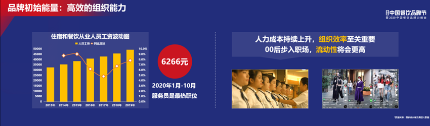 為什么要這樣?其實(shí)是因?yàn)槲覀兊膯T工人工成本變得越來越貴,從2013到2019年,住宿和餐飲從業(yè)人員工資增長(zhǎng)速度在逐年增長(zhǎng)。當(dāng)人工越來越高的時(shí)候,我們對(duì)員工的關(guān)注也會(huì)越來越高,會(huì)擔(dān)心人才流失,會(huì)擔(dān)心給到的福利不夠。