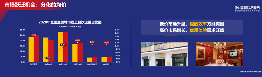 首先,人均50元以下的餐廳,線上關(guān)注度變高了,說明快餐的賽道引起了更多消費(fèi)者的關(guān)注,或者說消費(fèi)者在快餐賽道中吃飽吃好是基礎(chǔ)選擇;其次,我們發(fā)現(xiàn)人均120元以上的餐廳,線上數(shù)據(jù)也在增長(zhǎng),意味著疫情之后消費(fèi)者更加關(guān)注餐廳的品質(zhì)、餐廳的安全、餐廳的食材,他們寧可多花一點(diǎn)錢,也想吃到綜合品質(zhì)更好的餐廳。