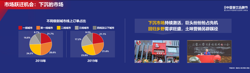左下圖標(biāo)的灰色部分,是指下沉到三線城市以下的機(jī)會(huì),2019年比2018年漲了10%。越來越多的全國(guó)性連鎖品牌開始走下沉路線,關(guān)注三線以下城市市場(chǎng)的機(jī)會(huì)。