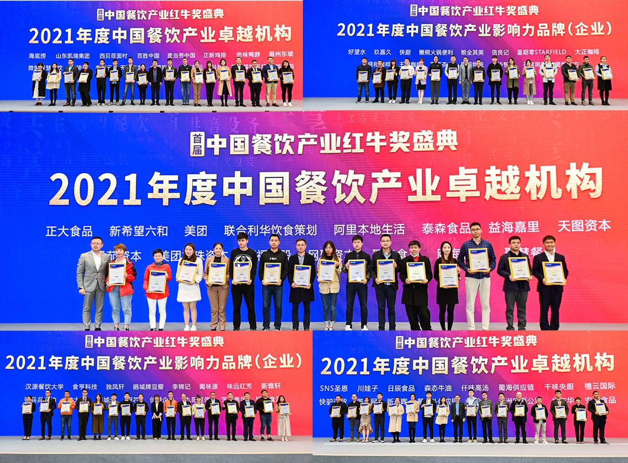 作為壓軸環(huán)節(jié),峰會現(xiàn)場隆重揭曉了首屆“中國餐飲產(chǎn)業(yè)紅牛獎”三大獎項(xiàng):“2021年度中國餐飲產(chǎn)業(yè)卓越機(jī)構(gòu)”、“2021年度中國餐飲產(chǎn)業(yè)影響力品牌(企業(yè))”和“2021年度中國餐飲產(chǎn)業(yè)領(lǐng)袖人物”。