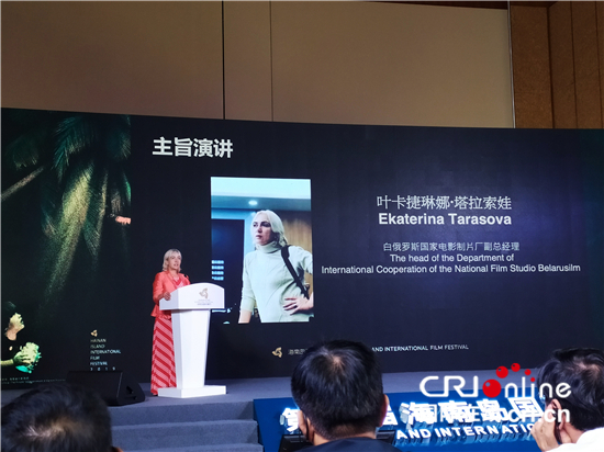 白俄羅斯國(guó)家電影制片廠副總經(jīng)理葉卡捷琳娜·塔拉索娃女士盛贊海南島國(guó)際電影節(jié)的重要性。瞿文斌攝