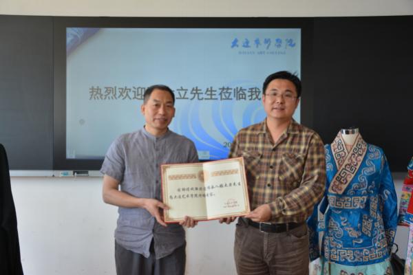 服裝學(xué)院張志宇院長為張大立老師頒發(fā)大連藝術(shù)學(xué)院特聘專家證書。