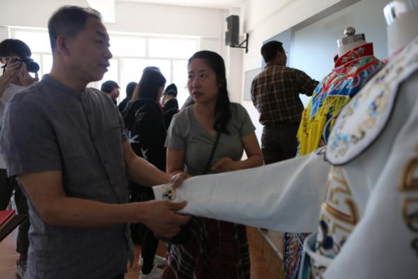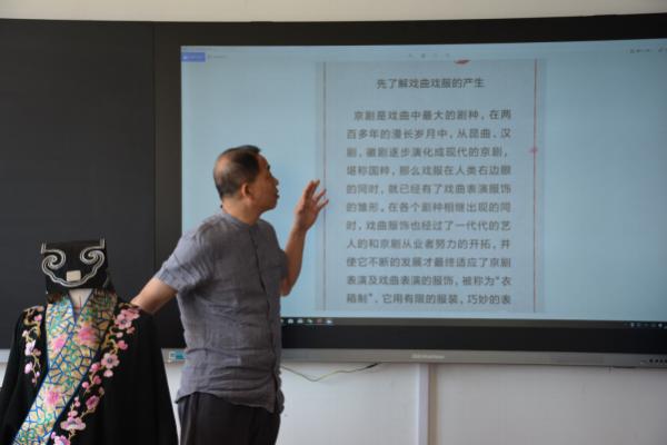 張老師介紹了傳統(tǒng)京劇的衣箱制度,衣箱分為大衣箱,二衣箱,三衣箱等。京劇服飾的服色為黑、白、紅、藍(lán)、黃的上五色和香色、湖藍(lán)、粉色、綠色、紫色的下五色。在了解劇情和歷史的基礎(chǔ)上,要充分了解每部戲的歷史背景,才能準(zhǔn)確地設(shè)計(jì)出富有時(shí)代感的戲曲服裝。在戲曲藝術(shù)中,服飾、舞臺(tái)和道具缺一不可。在設(shè)計(jì)戲曲服裝的時(shí)候要了解吉祥圖案的紋飾及特點(diǎn),了解不同時(shí)期的民族服飾圖案和不同的風(fēng)俗習(xí)慣以及宗教禮儀。通過張大立老師對(duì)戲裝制作的講解,讓服裝學(xué)院的師生不僅對(duì)傳統(tǒng)京劇及傳統(tǒng)京劇的行頭有所了解,并且張老師的授課也使服裝學(xué)院的師生在將傳統(tǒng)文化如何巧妙融入現(xiàn)代服飾設(shè)計(jì)方面受到啟發(fā)。
