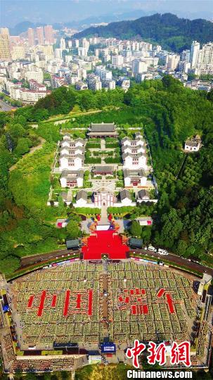 “最多人一起包粽子挑戰(zhàn)吉尼斯世界紀(jì)錄”活動在秭歸鳳凰山屈原祠舉行。 周星亮 攝