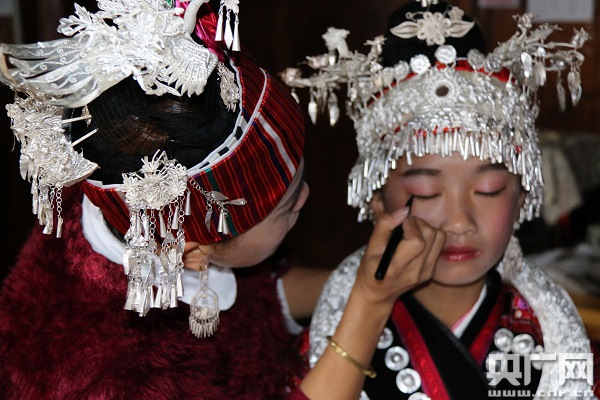 按照當(dāng)?shù)亓?xí)俗,苗族盛裝都是媽媽親自給女兒穿上的。想到明天媽媽不在身邊,要讓嬸嬸代勞,王奕覺(jué)得很委屈,哭了一晚上。