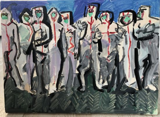 2020年的春節(jié),一場突如其來的災難降臨在中國大地上,從武漢暴發(fā)的新型冠狀病毒肺炎來勢兇猛,一場抗疫之戰(zhàn)在全國打響!武漢由于是原發(fā)地,災情嚴重,感染者眾多。封城后醫(yī)院壓力巨大,在這種危險時刻,醫(yī)務人員的無私奉獻精神感動著每一個中國人,他們不畏艱險、不懈奮斗的行為牽動著全世界人們的心!沒有什么比生死更重要!醫(yī)生護士們在大量的傳染性極強的病患面前、在超負荷的工作中沒有絲毫退卻。他們舍棄了同樣危險的家人,冒著被傳染的危險拼命地工作。他們同樣生為兒女、同樣生為父母,在大的危難面前,首先想到的是他們曾經(jīng)許過的誓言和職責!治病救人是他們的天職。幾天來醫(yī)生、護士在醫(yī)院現(xiàn)場忙碌的情景一直縈繞在我的腦海里,想象得出他們心身的壓力、想象得出他們與死神爭搶生命的一舉一動!特別是那些護士們,她們沒有了平時印象中的優(yōu)雅,有的只是極度的匆忙與疲憊以及信念和天職賦予她們的堅定!于是我選擇了她們在輪班前相互整裝待發(fā)的時刻,那種迎難而上的勇氣和信心在此刻凸顯無遺!雖是一個細小的情節(jié),沒有戰(zhàn)場的喧囂和拼搏,但卻有臨戰(zhàn)前的心跳和思緒,更能表現(xiàn)白衣天使內(nèi)心中純潔之使命和無畏之勇氣!